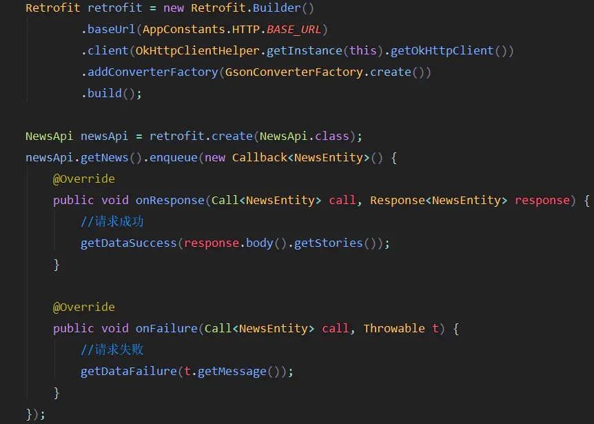 网络请求用的是Retrofit。用过的人,都知道优点。没用过的人就照着图示或者Demo去写就好了,而且网上的文章一大堆,本人就不赘述了。