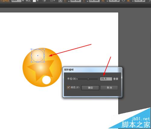3、接着选择椭圆工具,画两个圆形填充白色,选种圆形到效果—模糊—高斯模糊,如图所示