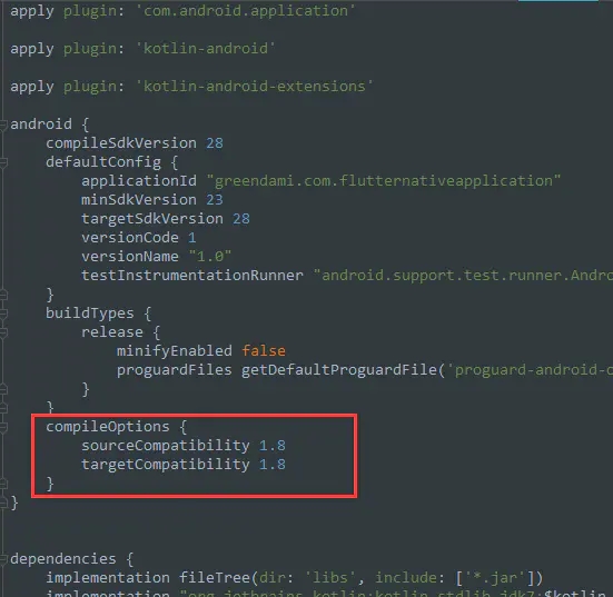 compileOptions { sourceCompatibility 1.8 targetCompatibility 1.8 }