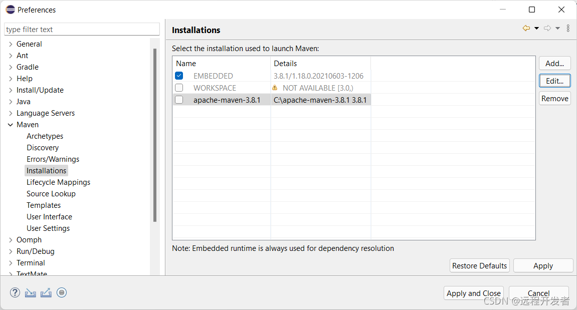 添加前提是你先安装好maven,这里安装的是maven 3.8.1