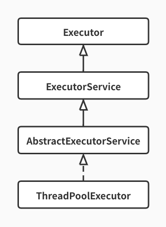ThreadPoolExecutor基于ExecutorService接口实现提交任务,未采取常规资源池获取/归还资源的形式,整个线程池和线程的生命周期都由ThreadPoolExecutor进行管理,线程对象不对外暴露;ThreadPoolExecutor的任务管理机制类似于生产者消费者模型,其内部维护一个任务队列和消费者,一般情况下,任务被提交到队列中,消费线程从队列中拉取任务并将其执行。