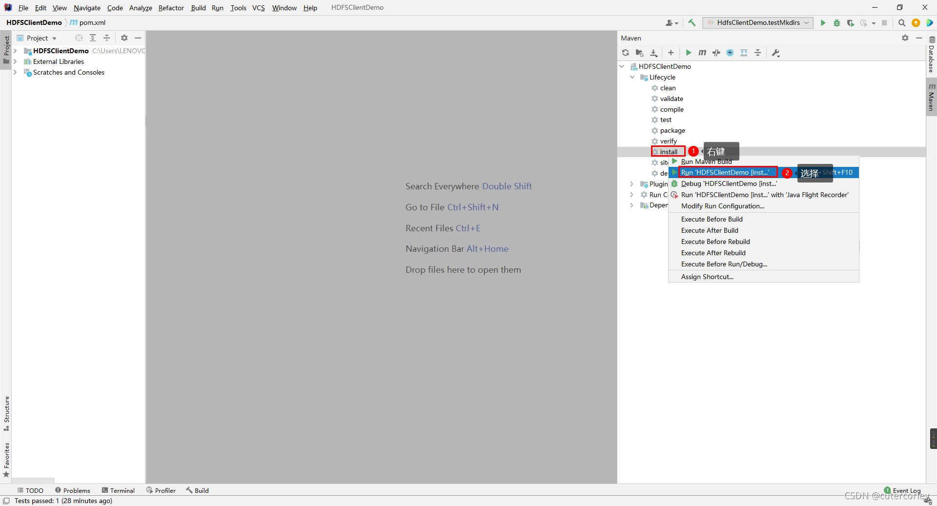 - IDEA打开项目后,右侧Maven选项,点开后,再打开Lifecycle,如下:
