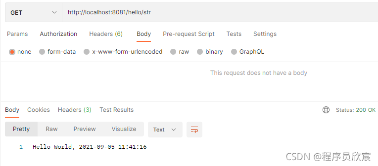 - 再运行provider-hello应用,用Postman向其发请求试试,如下图,符合预期: