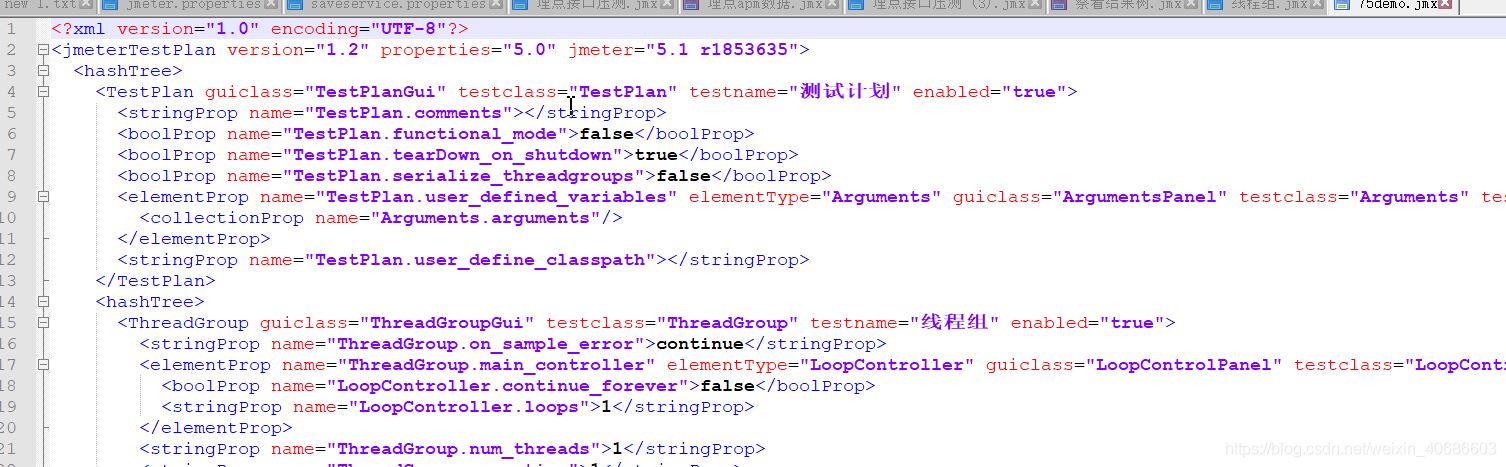 我们在JMeter控制台导出的jmx文件,是一个xml结构的数据,他其实就是由HashTree生成的,后面我们会讲到