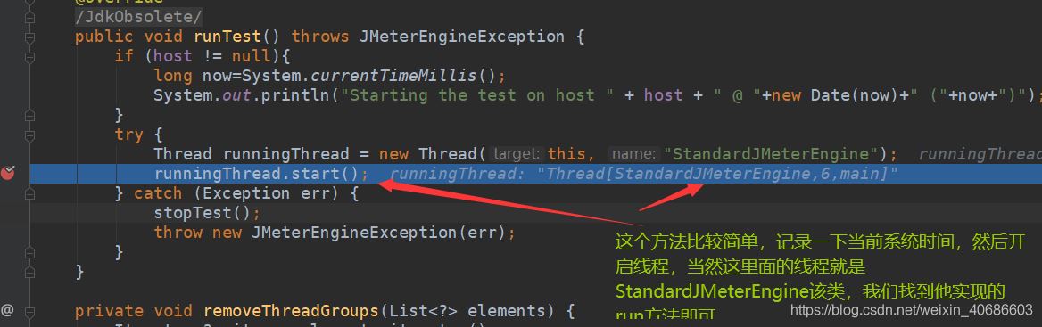 接下来进入到StandardJMeterEngine类,这才是真正启动jmeter engine的入口,接下来我们看看在runTest函数中都做了些什么