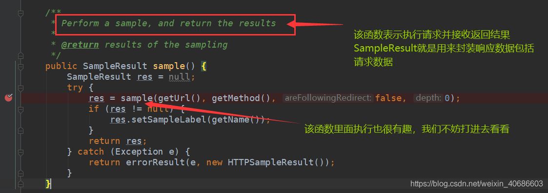 doSampling()函数中会执行sampler.sample(null)该段代码,这里面会执行sample()方法并接收返回结果