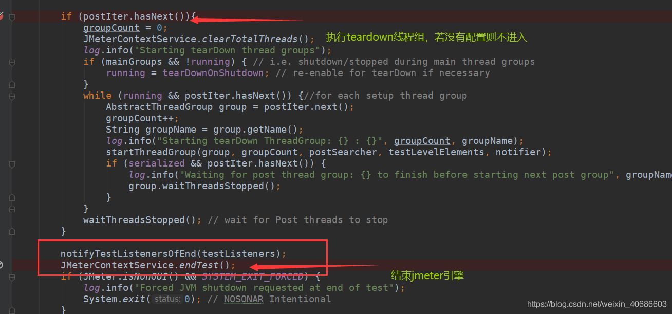 StandardJMeterEngine类run方法结尾部分,至此整个jmeter引擎启动到结束就到此结尾了