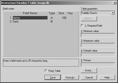 本系统中需要设计一个新的基于Paradox 7的数据库Image.db,图2为设计完成的Image.db数据库。