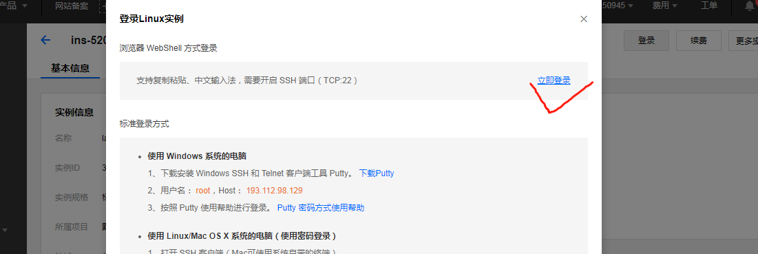 然后连接上Xshell,同样是访问 ip,用户名,密码这三个参数然后下面命令: