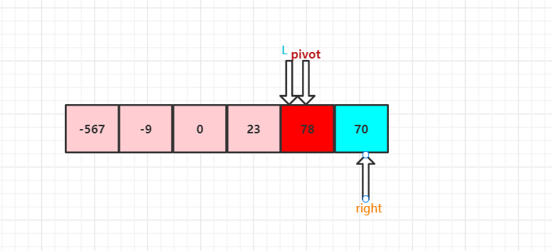// 当数组是: {-9, 78, 0, -23, 0, 70} 时(pivot的值在数组中有多个),就可以验证这里的逻辑