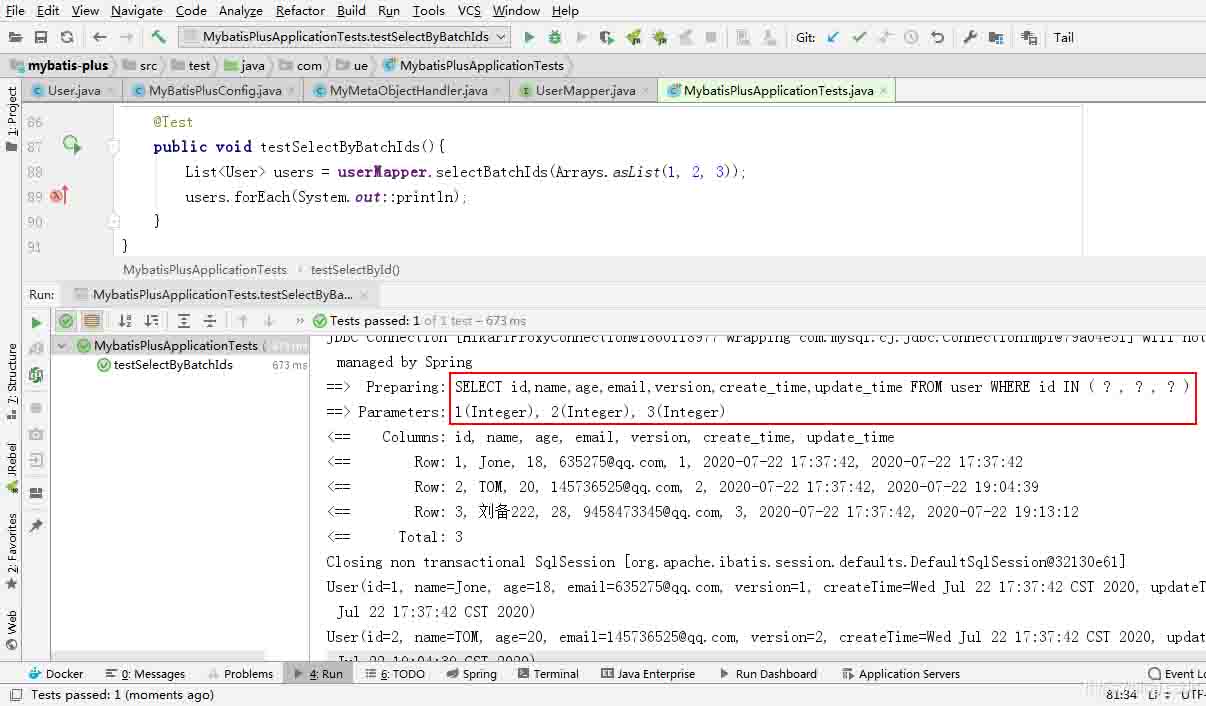 List<User> users = userMapper.selectBatchIds(Arrays.asList(1, 2, 3));