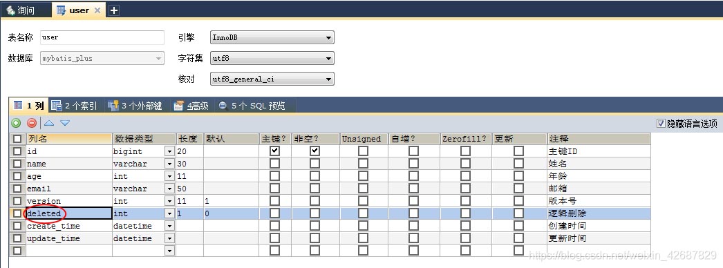 2.1、在数据库里增加deleted字段