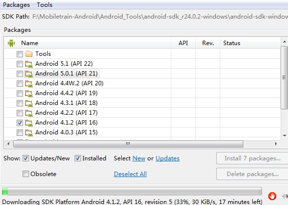 通过Android SDK Manage添加新的软件包