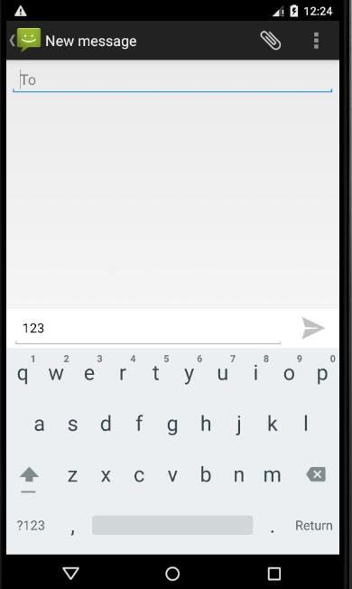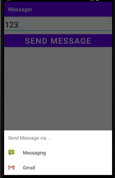 输入消息“123”并点击按钮发送,选择要发送的app(Messaging)