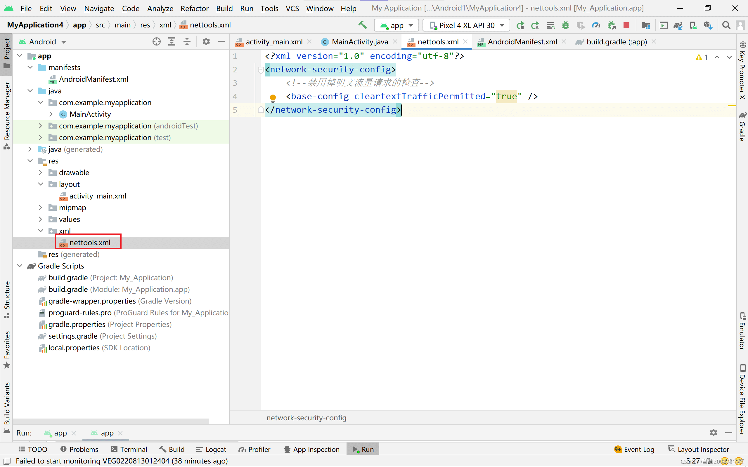 1.在res目录下新建xml文件夹,在xml文件夹下新建nettools.xml