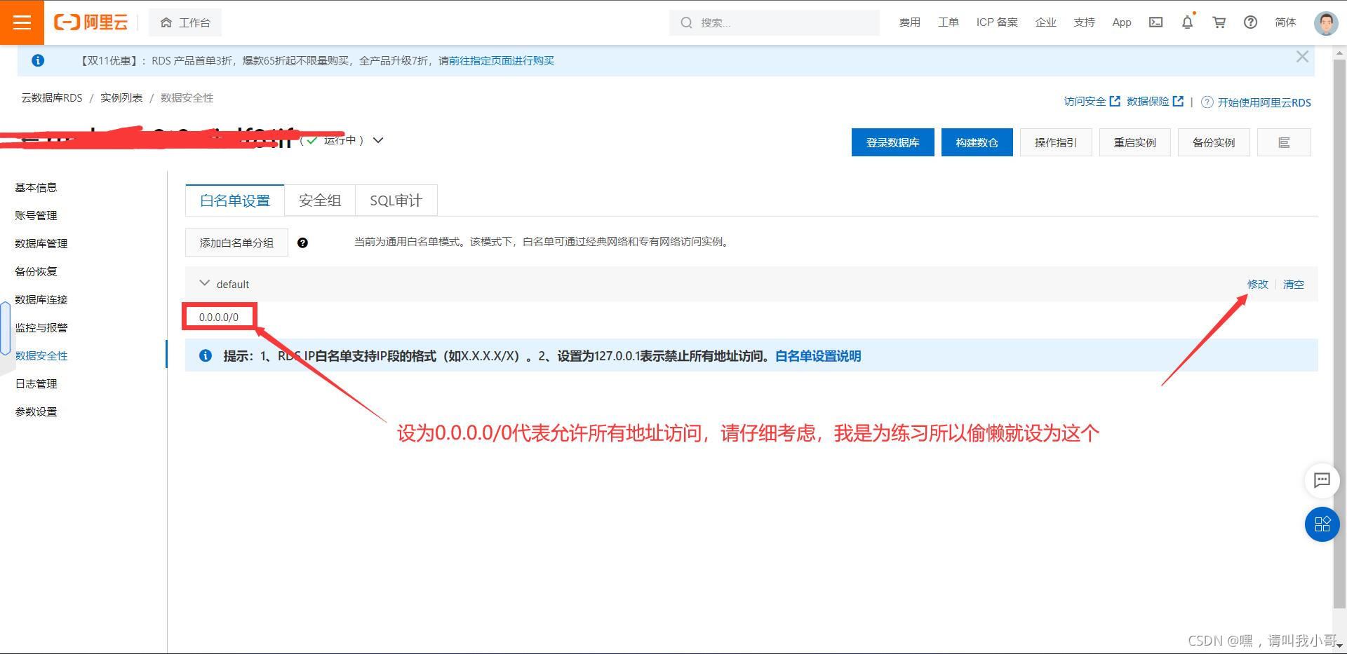 没有阿里云数据库的可以买个最便宜的,我是新用户9.9元买了一个