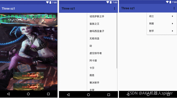 android:text="请点击界面右上角选项菜单查看英雄简介"