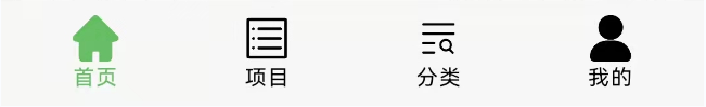 从图中可以可以出,底部导航栏主要包含四个tab,分别是首页、项目、分类以及我的,而每个tab又分别包含一张图片和一个文字。