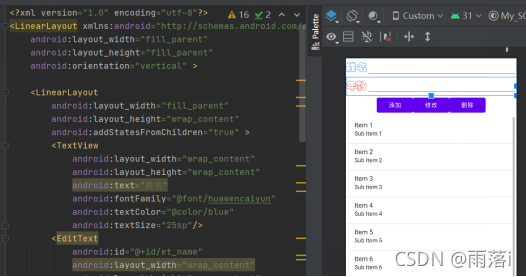 activity_main.xml对主界面进行设计,需要有输入栏、操作按钮、结果显示,其中结果显示使用listView组件进行展示。