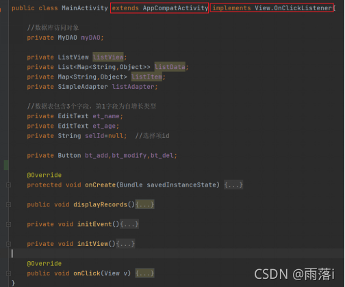 核心代码:(这里只展示 onCreate和displayRecords两个方法)