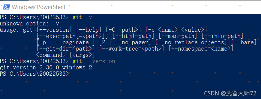 - git windows版2.X以上,确保配置过环境变量,在powershell里面可以调用,如下图: