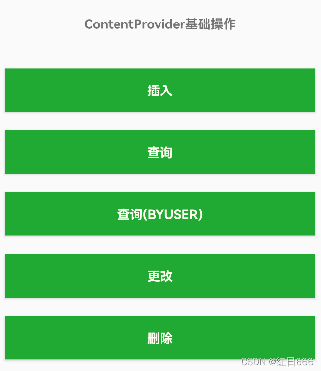该Activity页面如下,点击相关按钮可以进行基础的增、删、查、改操作,可通过log查看调用结果。