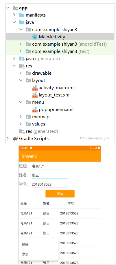- 1.实现一个列表,其中显示班级学号姓名,提供添加功能