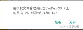 按以上代码,是可以实现对外置存储卡进行读和写操作了,只要机器没关机,多关打开关闭app,都不会弹下面这个授权框: