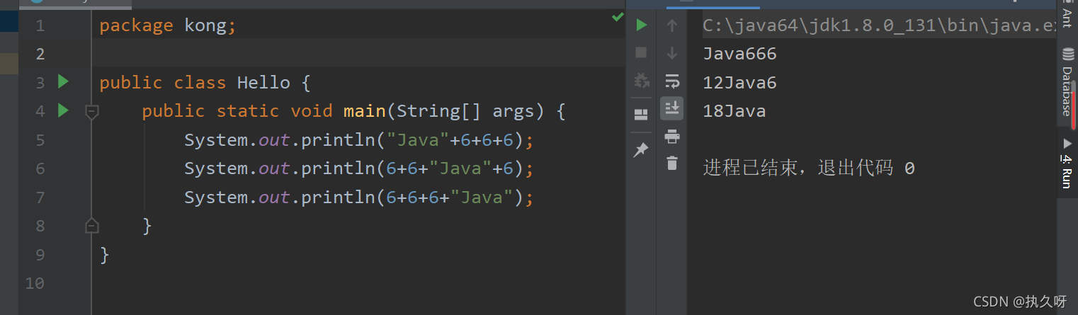 这个是不同于c语言的,在Java中,+号除了能购做运算之外,还有一个常用的用处-------------
