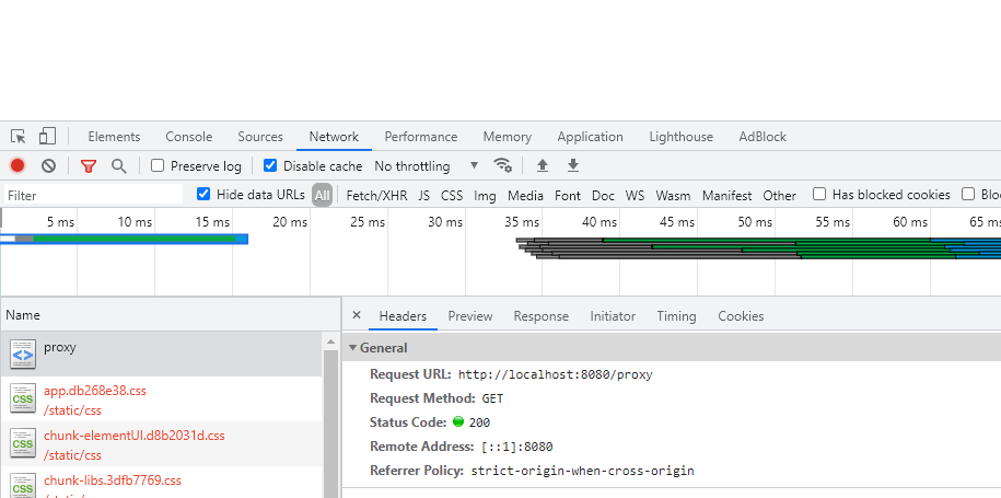 刚开始其实是准备在已有的一个模块中加上这个代理功能,因为可以指定拦截的路径,比如只拦截请求路径为/proxy/*的,然后交给自定义的Servlet去代理,后来写好测试时,发现代理过去后代理目标主页一片空白,看了控制台的Network后,主页确实是返回200且加载正常,但是由主页发起的js、css和img等静态资源状态码都为404。