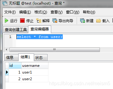 conn.createStatement().execute("create table user(id int, username varchar(60)) ENGINE=InnoDB DEFAULT CHARSET=utf8 ");//是否支持事务与数据库引擎有关,此处删除 ENGINE=InnoDB DEFAULT CHARSET=utf8 可能不支持事务