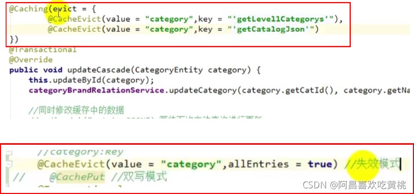 //组合了删除缓存的@CacheEvict注解,同时删除两个