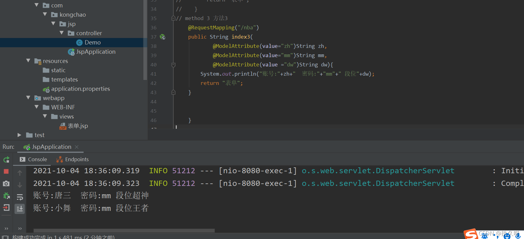 如果还有添加其他的也是用name和id然后再Demo创建、打印即可