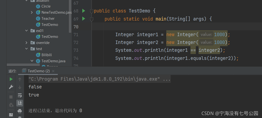 有C/C++知识的小伙伴应该很了解),在子类中往往会重写该方法,用于判断对象的内容是否相等。比如等下会简单了解到的Integer和String(在IDEA里看源码实现)