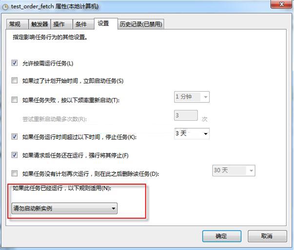 这个方法还是用任务计划,而且任务计划很强大,默认就可以实现当前实例还在执行的时候不要启动新实例。也就是说,如果一个执行的动作,执行的时间超过任务计划的间隔,那么当下个任务启动的时候,第一个任务还没执行完成,这种情况他自动不会重复执行。设定如下图:
