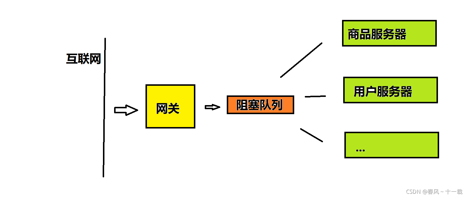 这样的情况在计算机中也是很典型的,尤其是在服务器开发中,网关通常会把互联网中的请求转发给业务服务器,比如一些商品服务器,用户服务器,商家服务器(存放商家的信息),直播服务器。但因为互联网过来的请求数量是多是少不可控,相当于上游的水,如果突然来了一大波请求,网关即使能扛得住,后续的很多服务器收到很多请求也就会崩溃(处理一个请求涉及到一系列的数据库操作,因为数据库相关操作效率本身比较低,这样请求多了就处理不过来了,因此就会崩溃)