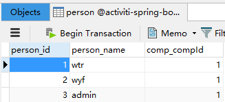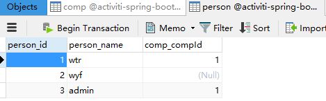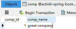 我们现在通过访问http://localhost:8080/complete/true/10 完成任务,true为同意(可以选择false),10为task的id,任务完成后会自动调用Service Task,此时wyf这条记录的comp_compId为更新为当前公司的id。