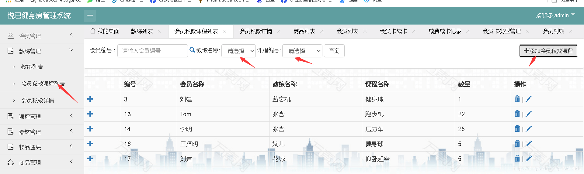 会员私教课程管理: