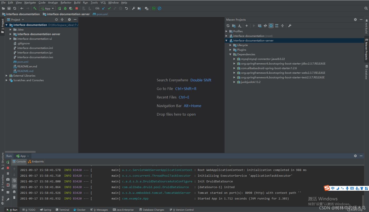 最后,把代码全部删掉(因为是新项目,所以原本也没几个文件),只留下了一个启动类。然后maven依赖只留下了springboot的test 和 web,尝试启动,是可以的。 接着,慢慢加mysql-collection 依赖,druid依赖。到这里的时候报错了。 查看控制台,发现报错的是一个1.5.7的springboot。想着把它通过exclusions去掉,然后接着clear, install 打包,又报错了。又是一个新的错误。 这时候想起来在最开始处理依赖的时候,就是各种exclusions去除jar包,就是因为版本的问题。 想着添加parent试试。 在pom.xml里面添加parent,通过parent控制springboot依赖。