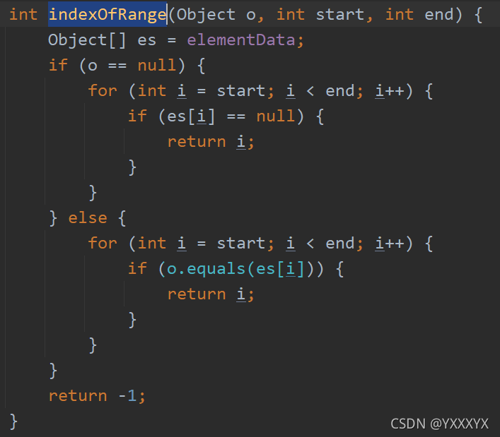 这里可以发现,indexOfRange中 o 调用了equals方法(蓝色部分)!