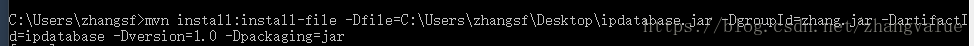 mvn install:install-file -Dfile=C:UserszhangsfDesktopipdatabase.jar -DgroupId=zhang.jar -DartifactId=ipdatabase -Dversion=1.0 -Dpackaging=jar
