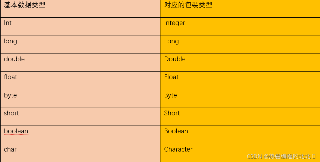 补一下Java中的基本数据类型与对应的包装类: