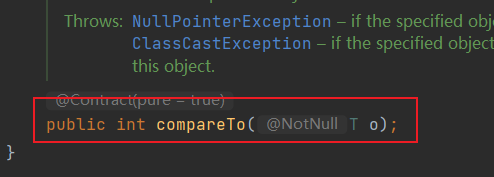class Student implements Comparable<Student>{ public String name; public int age; public double score; public Student(String name, int age, double score) { this.name = name; this.age = age; this.score = score; } @Override public String toString() { return "Student{" + "name='" + name + ''' + ", age=" + age + ", score=" + score + '}'; } }但此时还不行,因为继承需要重写接口的抽象方法,所以经过查找,我们找到了