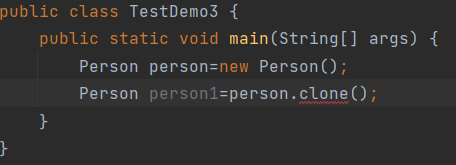点击红框框就行,但是你会发现点击后还是报错,这是由于重写的方法的返回值是 Object,而编译器会认为这是不安全的,因此将它强制转换成 Person 就可以了。此时我们再将克隆的副本输出发现结果没问题