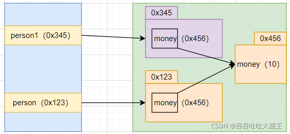 由于克隆的是 person 的对象,所以只克隆了(0x123)的 money,而(0x456)的 money 没有被克隆,所以就算前面的 money 被克隆的副本也指向它,所以改变副本的 money,它也会被改变