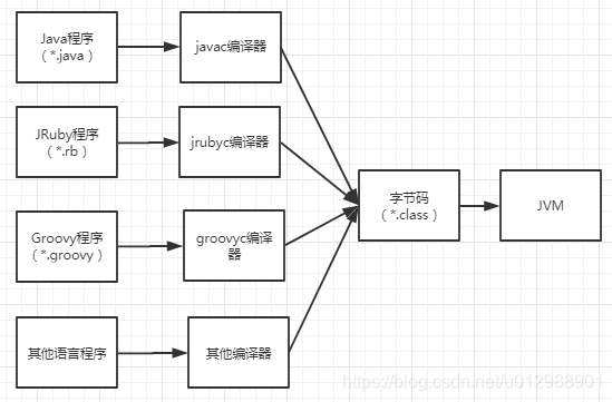 各种不同平台的虚拟机与所有平台豆统一使用的程序存储格式——字节码(ByteCode)是构成平台无关性的基石。Java虚拟机不和包括Java在内的任何语言绑定,它只与"Class 文件" 这种特定的二进制文件格式所关联,Class文件中包含了Java虚拟机指令集和符号表以及若干其他辅助信息。基于安全的考虑,Java虚拟机规范要求在Class文件中使用许多强制性的语法和结构化约束,其他的语言都可以用自己的编译器编译出能被Java虚拟机接受的有效的Class文件。其实现在很多语言都可以在Java虚拟机上运行了,比如kotlin、Scala、JRuby、Groovy、Jython。。。。。。