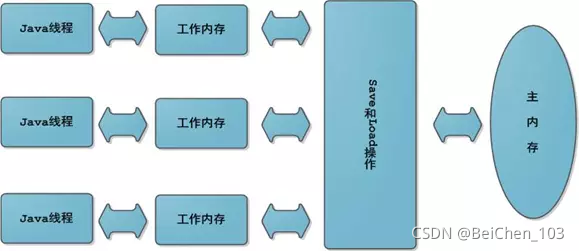 每个Java线程都有自己的工作内存。操作数据,首先从主内存中读,得到一份拷贝,操作完毕后再写回到主内存。