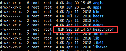 [root@wkp ~]# jmap -dump:live,format=b,file=/usr/local/heap.hprof 12632 Dumping heap to /usr/local/heap.hprof ... Heap dump file created
