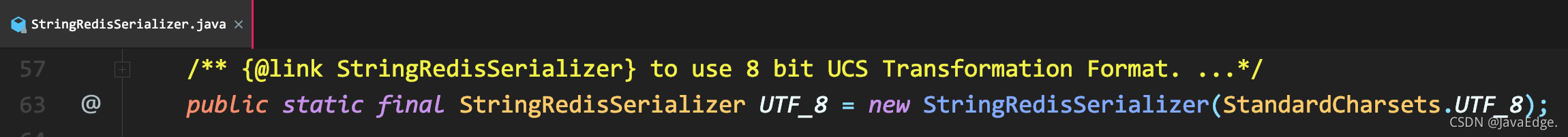 对于 StringRedisSerializer,它指定的 StringRedisSerializer: