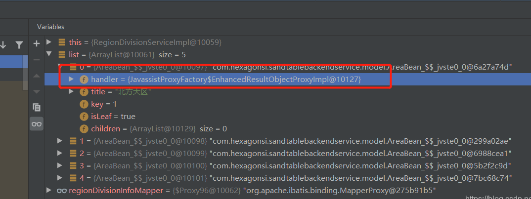 org.springframework.http.converter.HttpMessageConversionException: Type definition error: [simple type, class org.apache.ibatis.executor.loader.javassist.JavassistProxyFactory$EnhancedResultObjectProxyImpl]; nested exception is com.fasterxml.jackson.databind.exc.InvalidDefinitionException: No serializer found for class org.apache.ibatis.executor.loader.javassist.JavassistProxyFactory$EnhancedResultObjectProxyImpl and no properties discovered to create BeanSerializer (to avoid exception, disable SerializationFeature.FAIL_ON_EMPTY_BEANS) (through reference chain: com.hexagonsi.sandtablebackendservice.controller.viewModel.ReturnResult["data"]->java.util.ArrayList[0]->com.hexagonsi.sandtablebackendservice.model.AreaBean_$$_jvstc74_0["handler"])